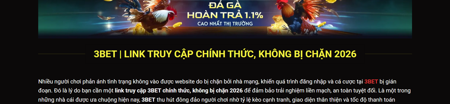 3Bet mang đến trải nghiệm giải trí trực tuyến toàn diện với hệ sinh thái ca cược đa dạng. Nền tảng được tối ưu cho cả máy tính và di động, giúp người chơi dễ dàng tham gia mọi lúc, mọi nơi với chất lượng ổn định và hỗ trợ tận tâm.