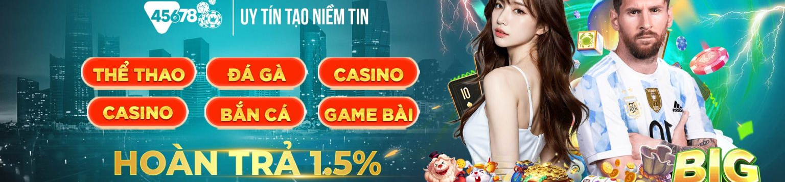 45678 mang đến trải nghiệm cá cược chuyên nghiệp: thể thao, casino, nổ hũ, bắn cá. Tỷ lệ cược cao, nạp rút siêu tốc, bảo mật tuyệt đối. Đăng ký ngay nhận thưởng hấp dẫn!