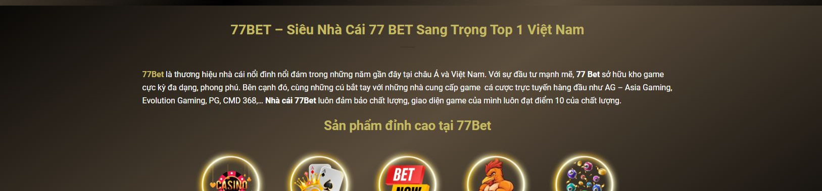 77Bet là thương hiệu có biệt danh là Siêu nhà cái bởi sở hữu giao diện cực sang trọng, bắt mắt và dàn sản phẩm cá cược Casino đỉnh cao. Địa chỉ: 20-22 Đường số 15, Bình Trị Đông B, Bình Tân, Hồ Chí Minh, Việt Nam.