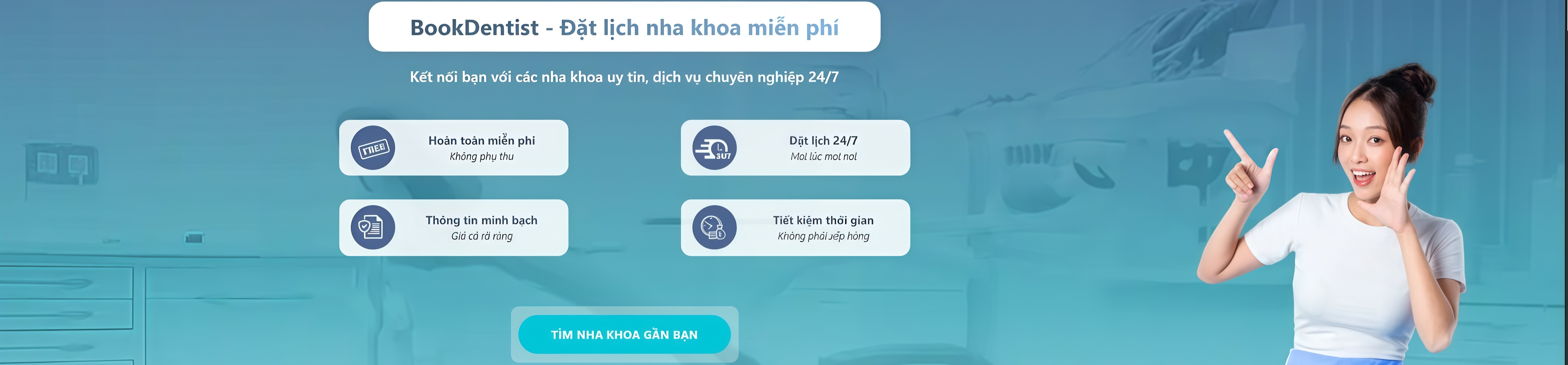 Thông qua BookDentist, người dùng có thể tìm kiếm, so sánh và đặt lịch nha khoa miễn phí tại nhiều phòng khám, giúp quá trình chăm sóc răng miệng trở nên đơn giản hơn.
