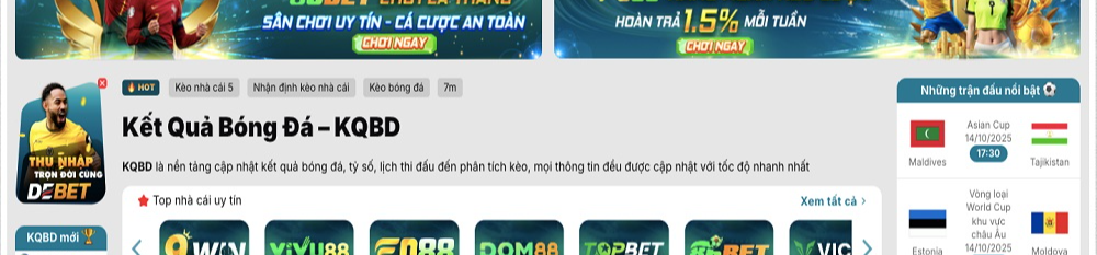 KQBD - website chuyên cập nhật kết quả bóng đá trực tiếp, tỷ lệ kèo, lịch thi đấu và bảng xếp hạng các giải đấu lớn nhỏ trong và ngoài nước