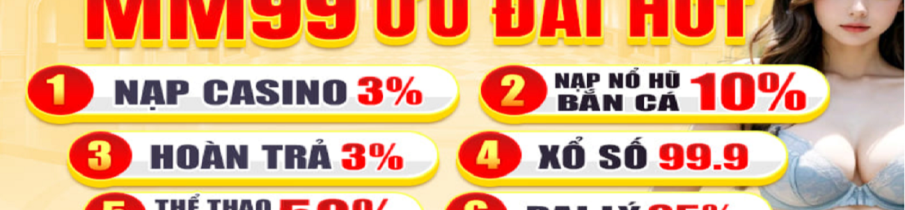 MM99 được mệnh danh là nhà cái trực tuyến uy tín hàng đầu hiện nay. Trang chủ MM99 Slot sở hữu hàng ngàn trò chơi trực tuyến hàng đầu về casino, thể thao, xổ số, bắn cá, nổ hũ