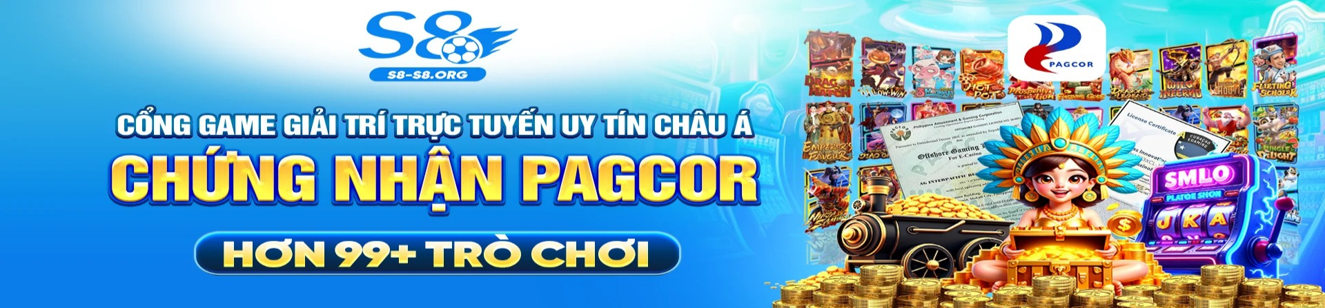 S8 là nền tảng giải trí hàng đầu, nơi người chơi có thể lựa chọn tham gia slot game nổ hũ, casino trực tiếp hoặc đặt cược thể thao với tỷ lệ kèo cạnh tranh.