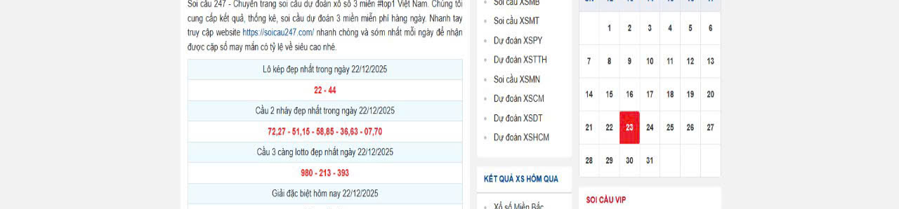 soicau247.com là nền tảng trực tuyến cung cấp thông tin thống kê và phân tích kết quả xổ số ba miền (Bắc – Trung – Nam), giúp người dùng dễ dàng theo dõi xu hướng, tra cứu số liệu và đưa ra dự đoán có cơ sở.