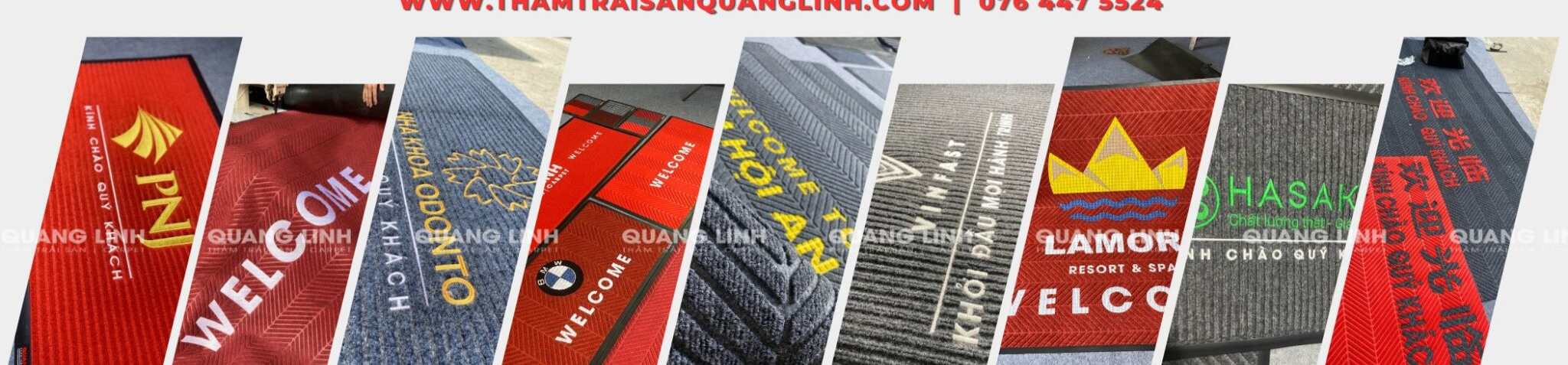 Thảm Trải Sà n Quang Linh chuyên phân phối thảm 3M chÃnh hãng, nháºn gia công theo kÃch thước và in logo thương hiệu chuyên nghiệp. Sản phẩm được ưa chuá»™ng bởi chất lượng vượt trá»™i, thiết kế tinh tế, và khả năng giữ bụi – hút nước hiệu quả. Quang Linh cam kết há»— trợ doanh nghiệp từ A-Z, bao