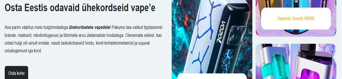 Tere tulemast Vape Estonia’i – siia, kus ühekordsed e-sigaretid ja uusimad trendid kohtuvad selge ning lihtsa valikuga.